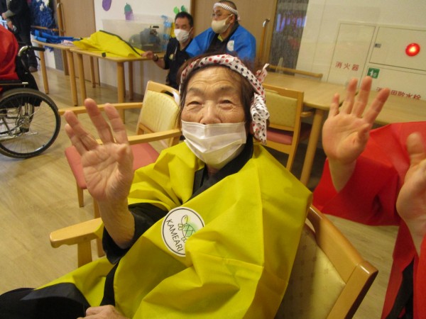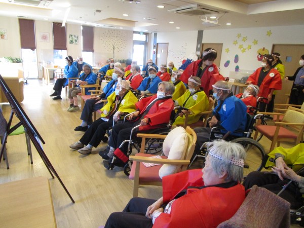 ご利用者の皆さま、スタッフ一同、みんなでお揃いのハッピ&ハチマキで集合(*^^)v