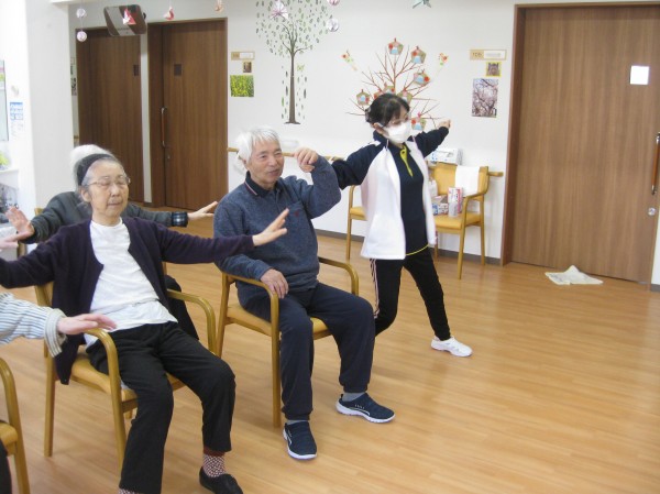 こんにちは! グループホームみんなの家・あきがせの介護ブログです! よろしくお願いいたします。 今日はALSOK体操を行いました。その時のご様子をお知らせいたします!!