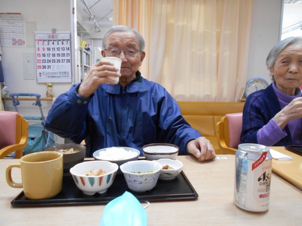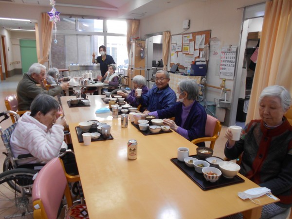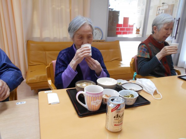 食事の際にノンアルコールビールを皆様でのみ、新年のお祝いをしました。