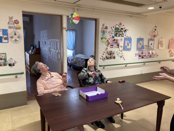 コマ回しや紙風船、福笑い、凧揚げなど昔懐かしい遊びを体験されたり