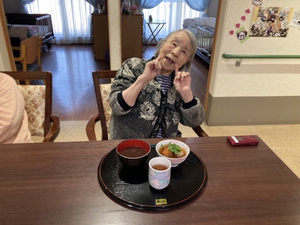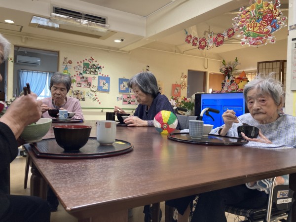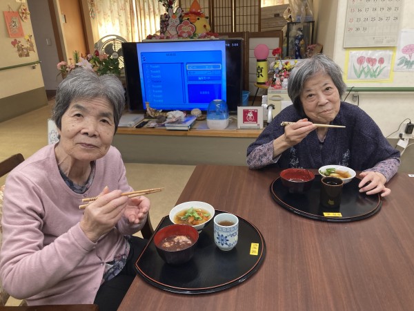 お雑煮とお汁粉は、うるち米ともち米を炊いた物を潰してお餅風にして皆様が食べやすい様に工夫しました