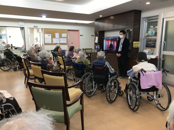 他のホームで行われた落語をリモートで共に楽しむ事が出来ました。