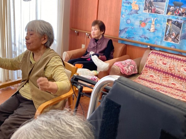 1階2階合同にて、リモートによる、タオルを使用したakストレッチ体操を始めて行いました( *´艸`)