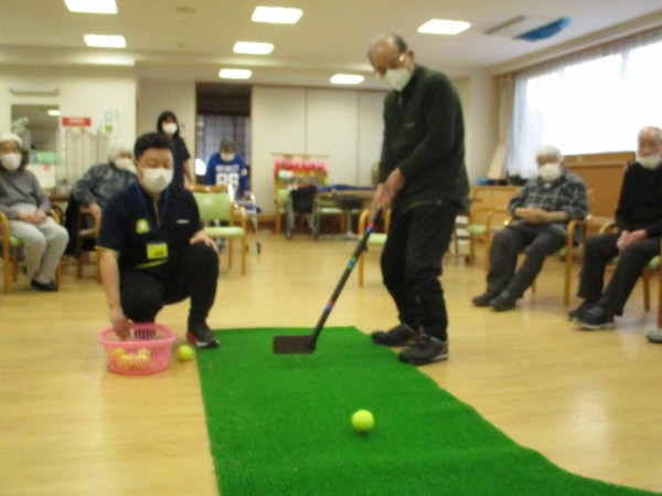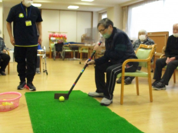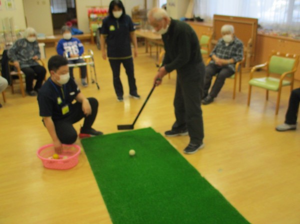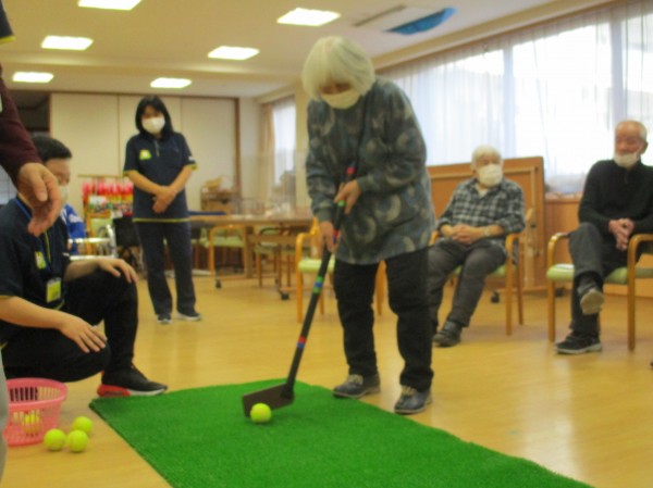 今日の運動レクレーションは『パターゴルフ』です。今回は男性陣が活躍しました!!! ナイスショット!!!