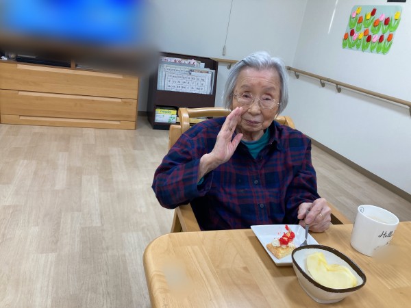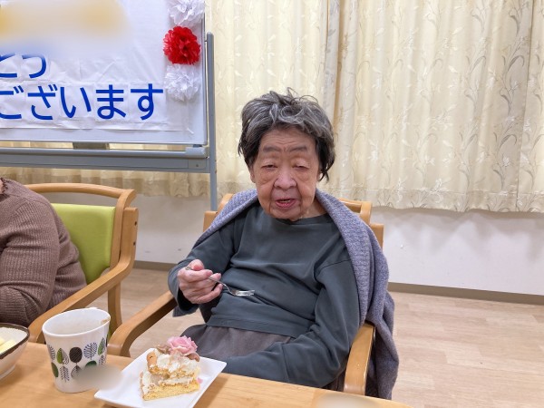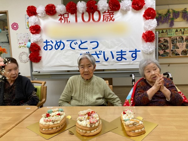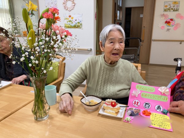 百寿のお祝いということで、職員手作りの特別なケーキをご用意させていただきました(*^-^*)