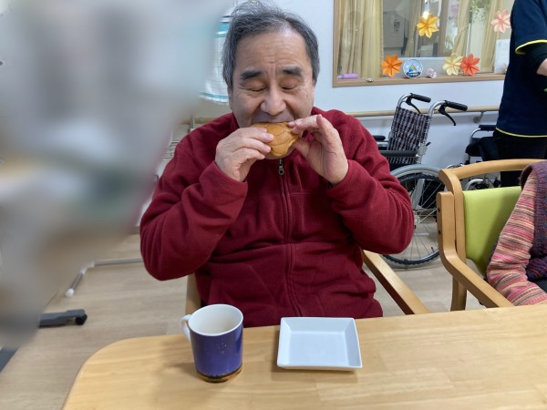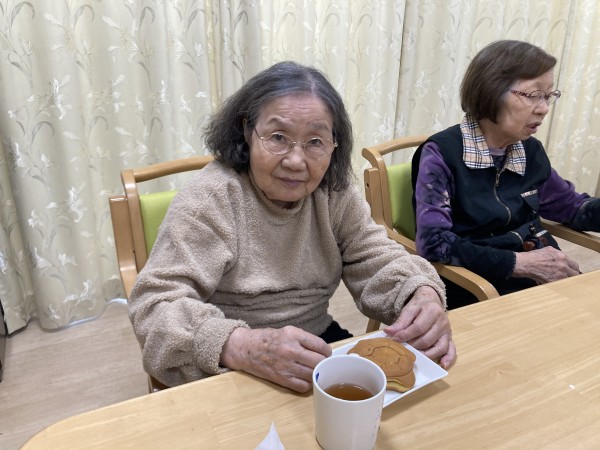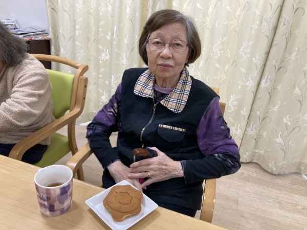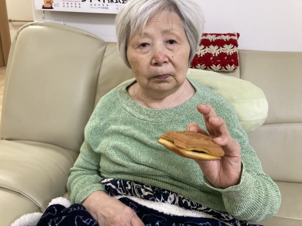 本日のお菓子は、ご入居者様のご家族様が差し入れに持って来てくださったどら焼きでした(^_-)-☆