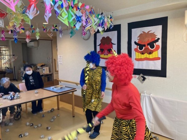 皆さんと協力して鬼を退治できました。