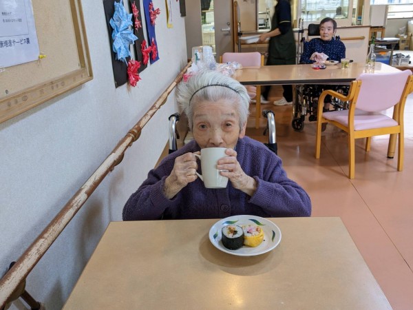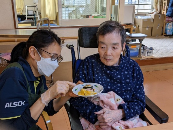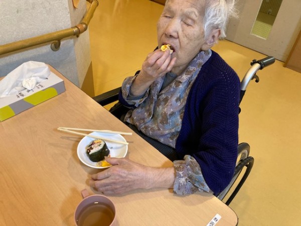 鬼退治の後は職員の手作り恵方巻を食べました。