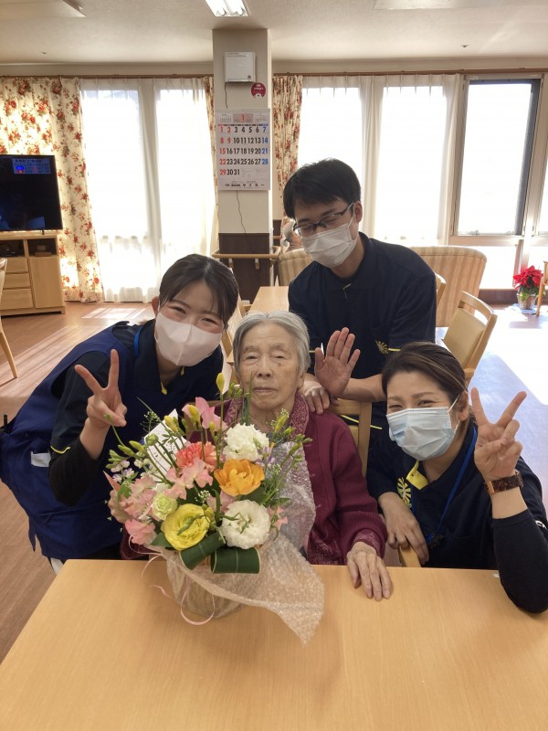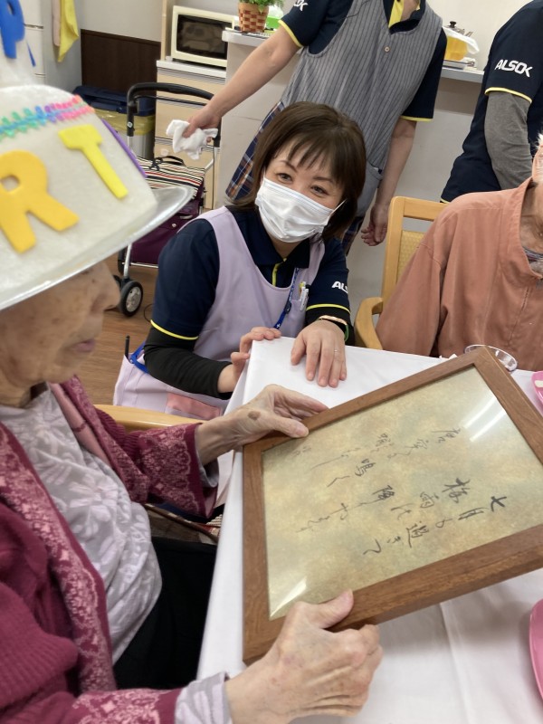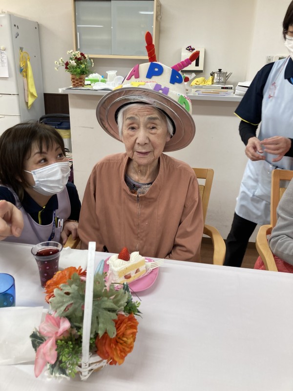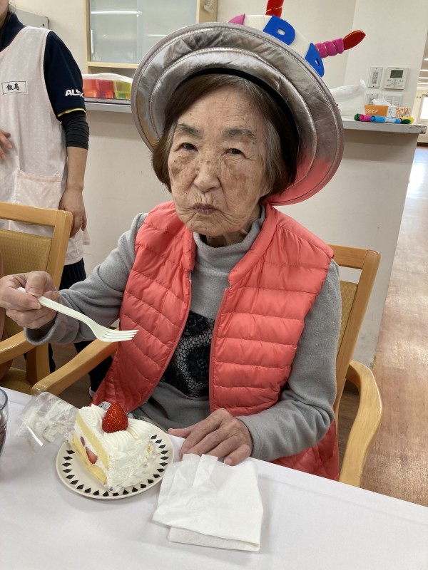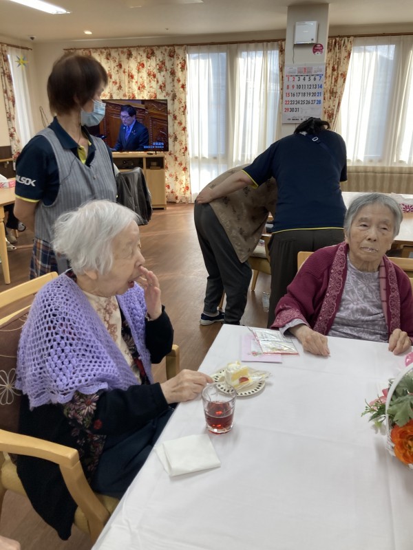 職員と皆さんで歌って、ケーキを食べながら
