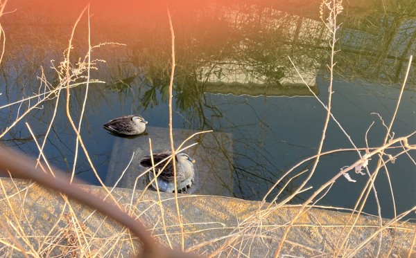 毎年ブログにあげておりますが、上尾瓦葺の裏には用水路があり、毎年この時期になると鴨がやってきます。