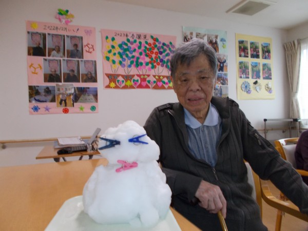 寒い日でしたが、職員が作った雪だるまのお目見えで盛り上がりました♪