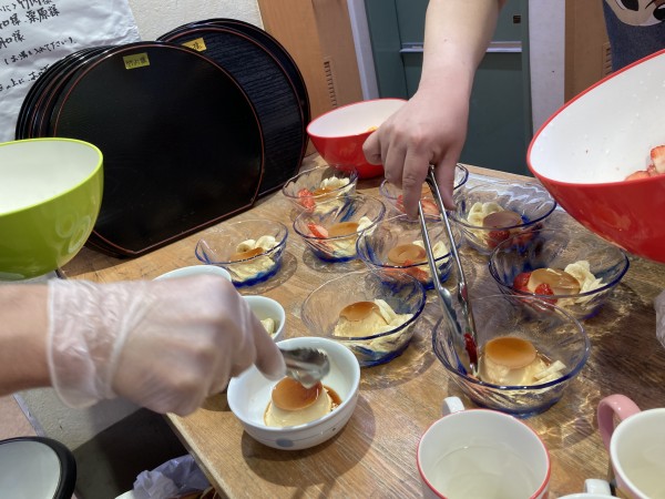 プリンアラモード、りんごジュース共に好評で皆様完食されていました
