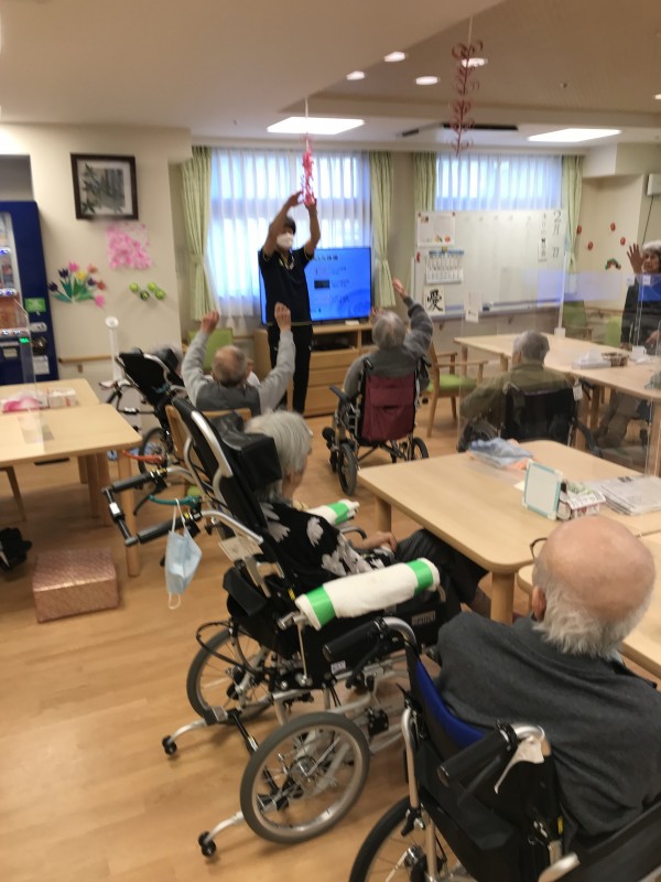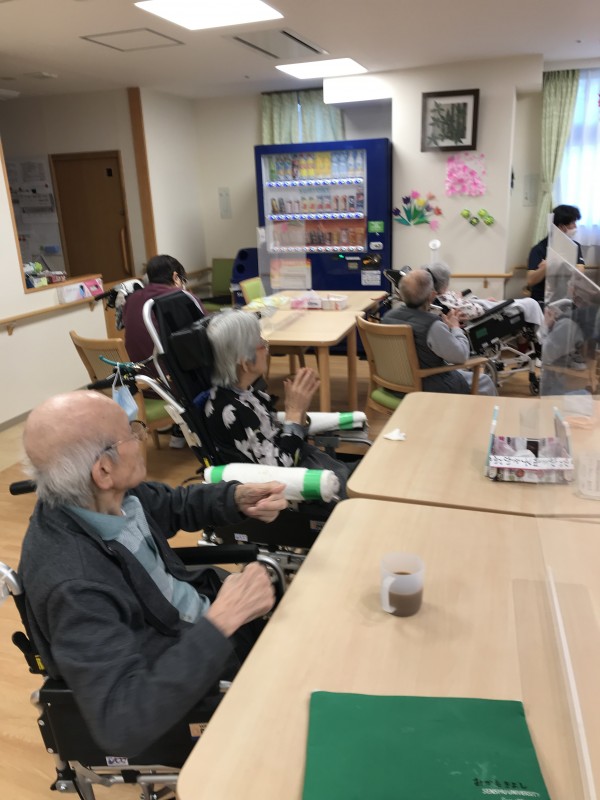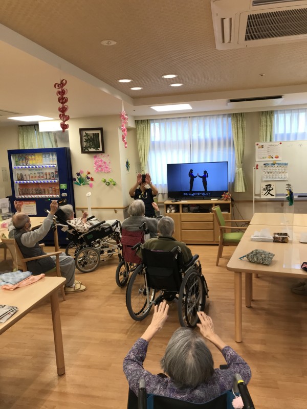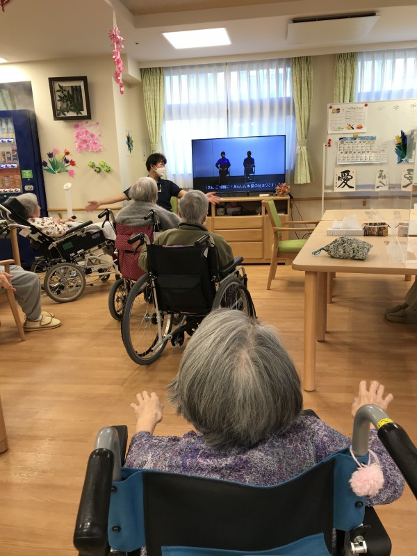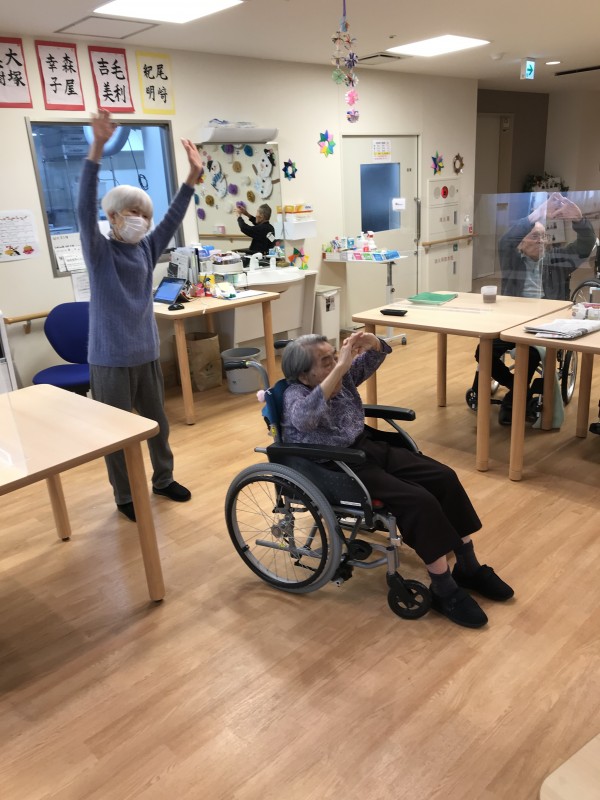 1Fの入居者様は体操好きで皆様ご自身のペースにて身体を動かされております