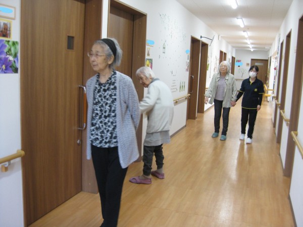 こんにちは! グループホームみんなの家・あきがせの介護ブログです! よろしくお願いいたします。 今日は室内で散歩したご様子・気分転換されたご様子をお知らせいたします!!