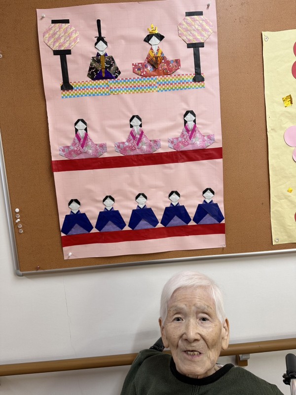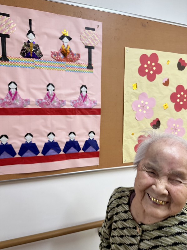 さて二階フロアでは、少し早いのですが『ひな祭り』の壁画を飾りました♬