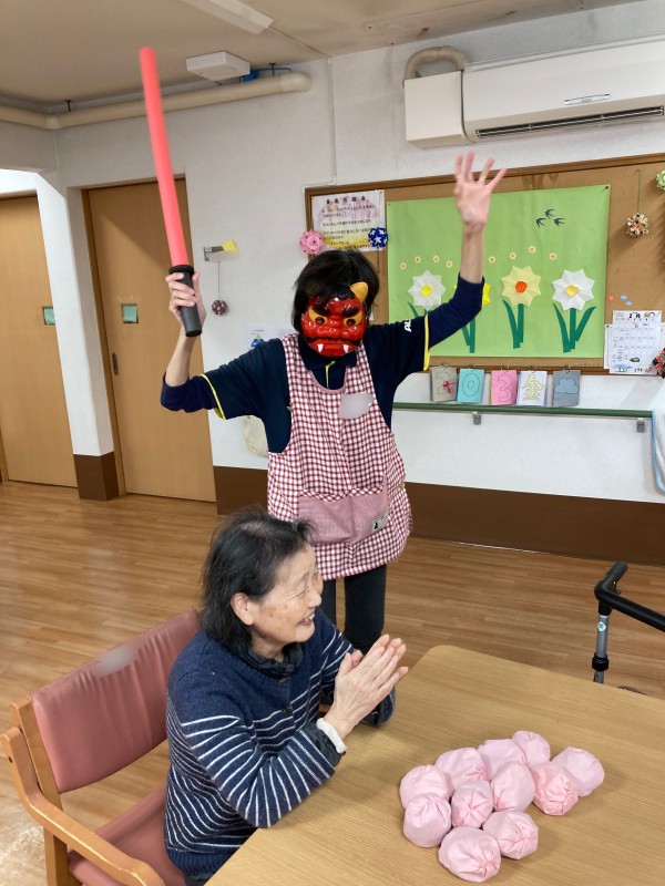 ホーム長がすでに1階の節分の