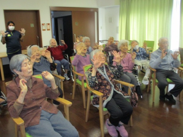 今日は大きな声で大きな口を開けての体操です。