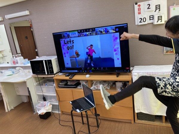 「みんなの家・川崎中野島」本日はリモート運動教室「いきいきリズム体操」の時間です。