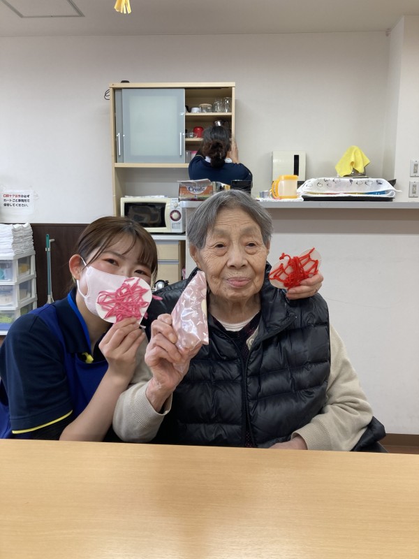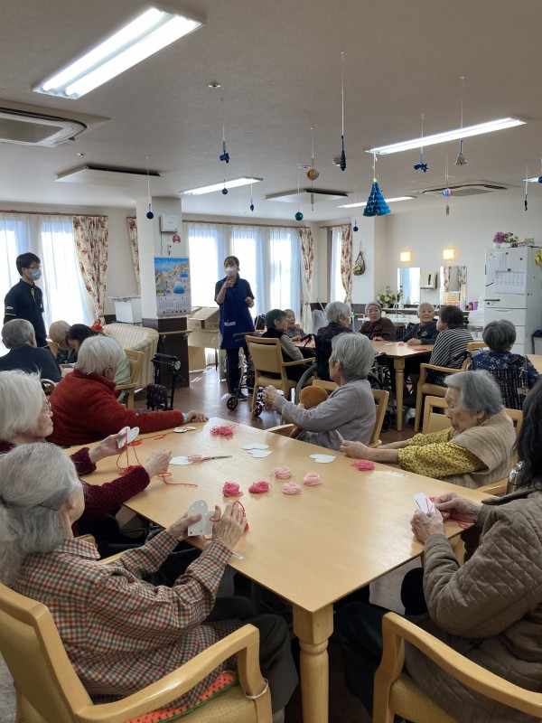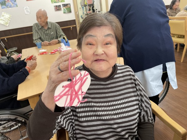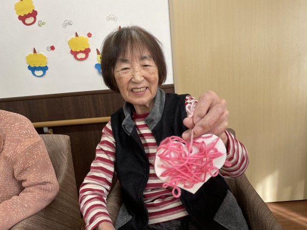 厚紙と毛糸を使った、ハートの飾りの制作と