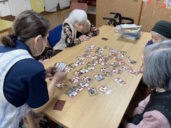 今日のレクリエーションはカルタ取りで~す。