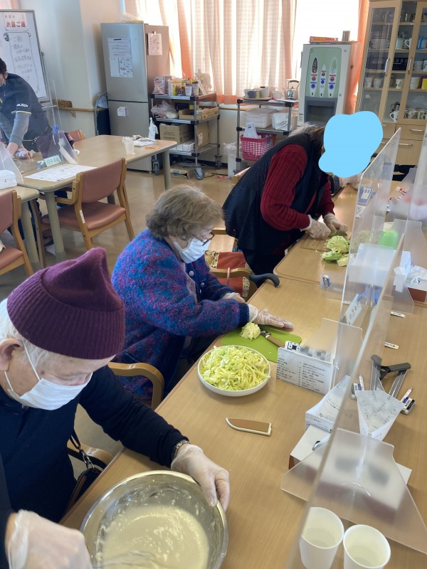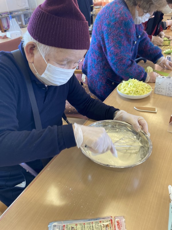 おやつレクです。今回はたこ焼きを作りました!!