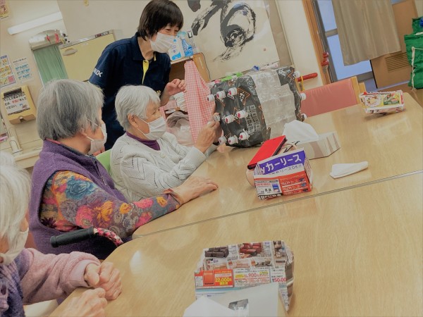 ペットボトル蓋は所々、緩かったり硬かったりと二通りあります。もちろんどこにあるのか分からないから、引くのもちょっと一苦労。とは言え、手首の運動にもなりますので、頑張って開けてる方もいらっしゃいました♪