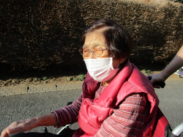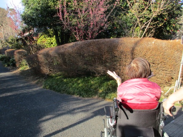 おやつを食べ終わり二人で施設の周りをお散歩