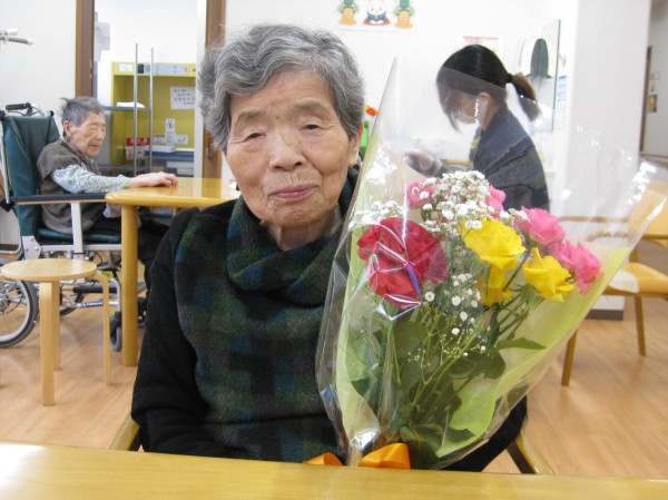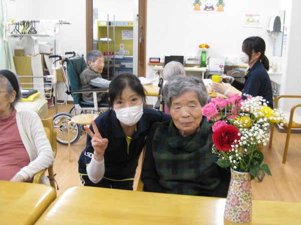 こんにちは! グループホームみんなの家・あきがせの介護ブログです! よろしくお願いいたします。 今日は長男様のお嫁様が来られ毎月1回のお花のプレゼントをお持ちになられました。その時のご様子をお知らせいたします!!