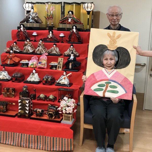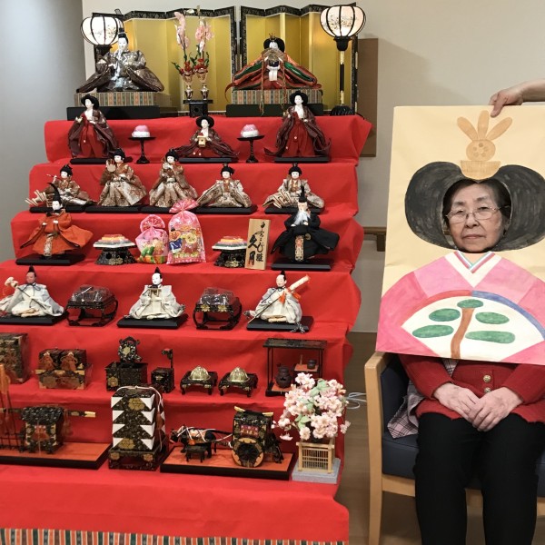3月3日はひなまつりでしたね!ホームでは、去年と同様エレベーターホールにひな壇を2つ飾りました!写真の1枚目と2枚目からのひな壇が異なります。