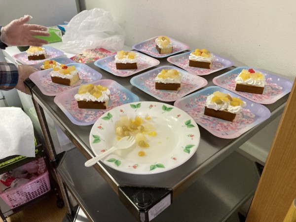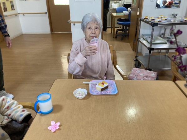 スタッフ手作りの甘酒(ノンアルコール)とデコレーションしたケーキを