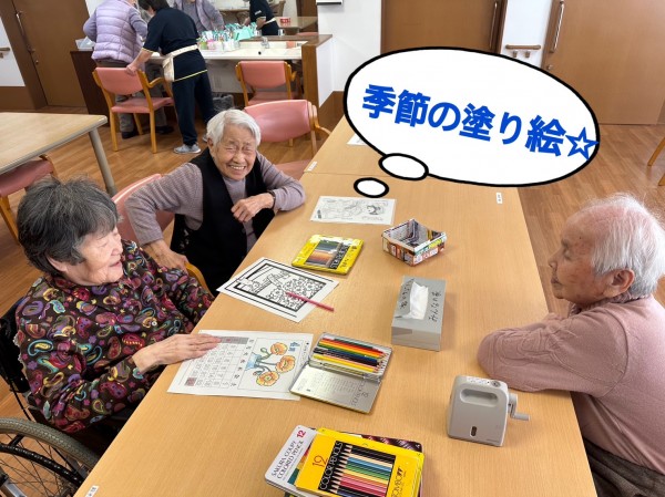 『漢字パズル』や『季節の塗り絵』に取り組まれたりと、