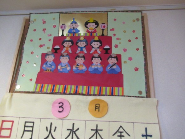 2月末に3月分のカレンダー作り(#^.^#)3月は・・・ひな祭りです♪