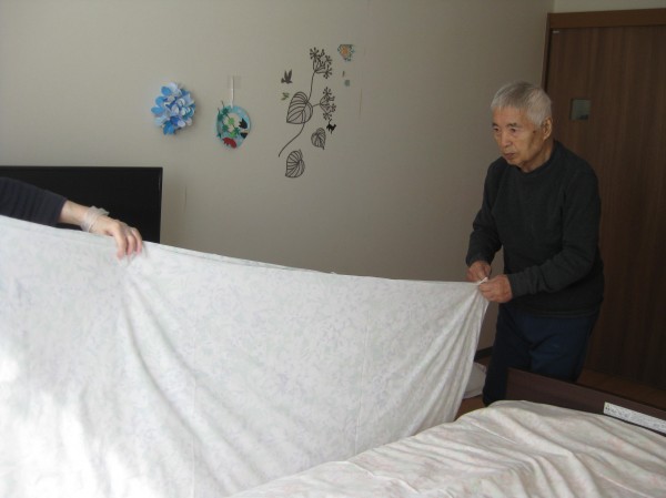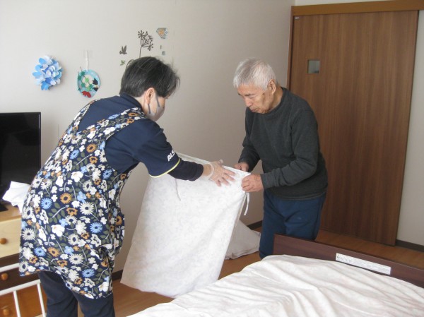 今日はシーツ交換のお手伝いを行いました!!
