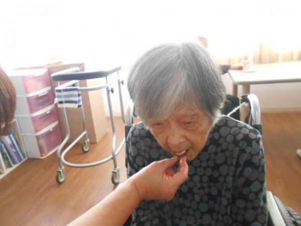 「アーン」と口に入れてあげるとその後はご自分でパクパク召し上がりました(*'▽')