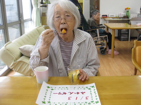 こんにちは! グループホームみんなの家・あきがせの介護ブログです! よろしくお願いいたします。 今日は手作りみかんゼリーを作り召し上がられている様子をお知らせいたします!!