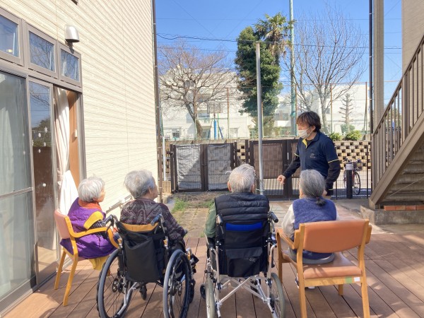 1、2階合同で、お隣のみんなの家・横浜飯田北Ⅱとの間にあるテラスで外気浴をしました!