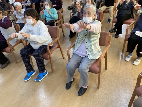 3月8日のレクリエーションはノーアエクササイズでした。毎日ノーア2という体操を行いました。