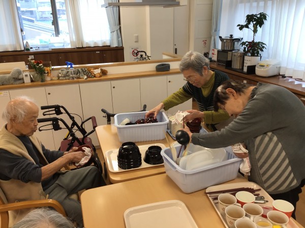 「俺もやるよ!」とS様も率先して食器拭きのお手伝いをして頂きました。