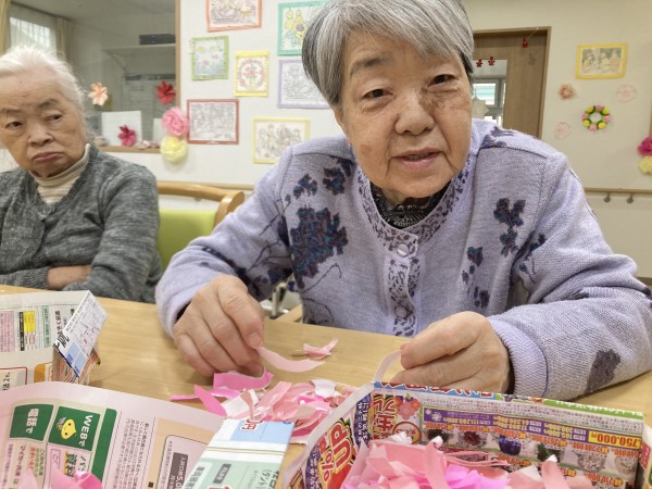 3月は桜の季節ということで、ご入居者様の皆様と一緒に桜のちぎり絵の制作を行いました(*^-^*)