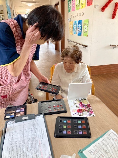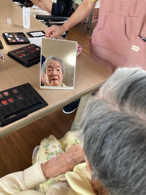 昔を思い出しながら、この色を使ってたね~とか、あまりお化粧はしなかったのよ~などとお話をしながら行っていました!