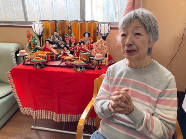 ご希望される方のみにお化粧をして、ひな飾りの前で記念撮影!