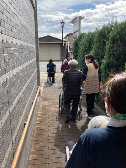 居室ですごれている方も、職員と皆様手作り桜の貼り絵をバックにしてお花見を楽しんで頂きました(^^♪