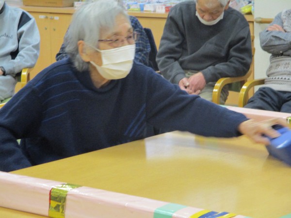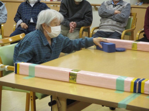 こんにちは!今日の運動レクレーションは『テーブルホッケー』です。