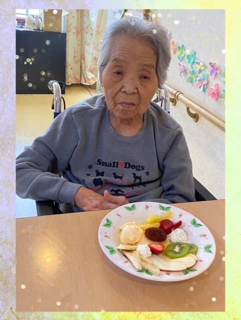 職員渾身のプリンアラモード! 美味しそう~ 盛り付けが素敵ね~ と皆さんに褒めて頂き、職員の低い鼻がちょっぴり高くなりました((´∀`))ケラケラ