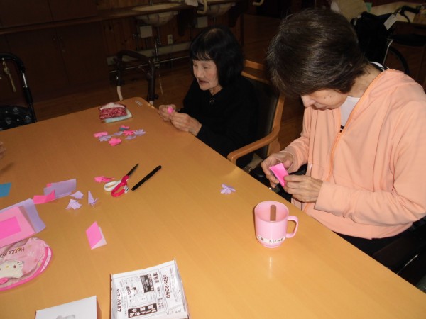 新館の皆様と桜の木を作りました♪