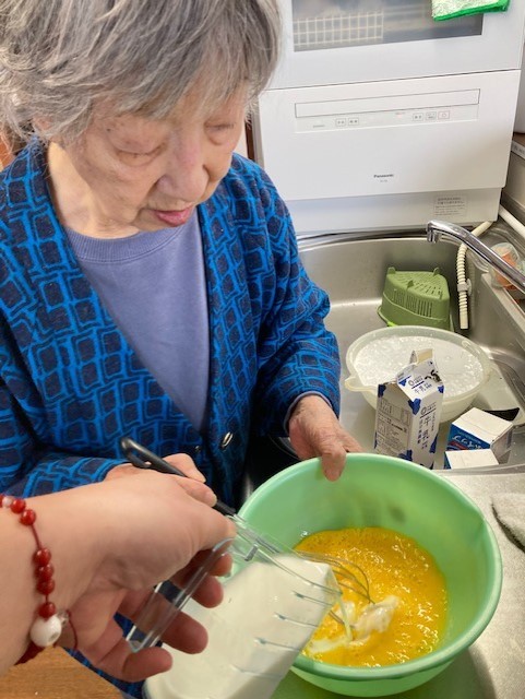 皆さんと一緒に、卵を割ったり粉を混ぜたりホットプレートで焼いたり!