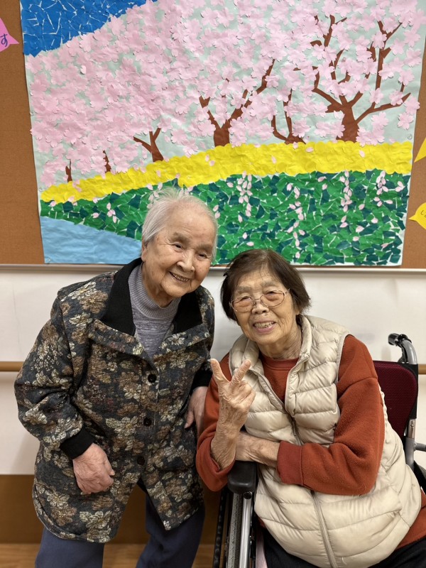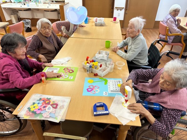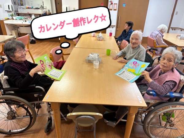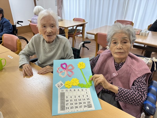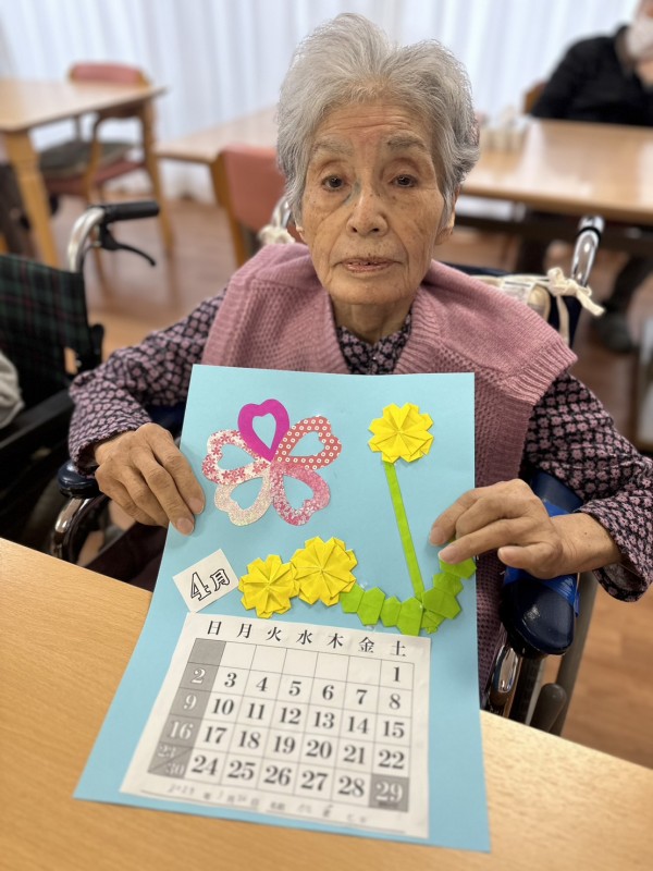 ◉談笑されながら、居室に飾る『4月のカレンダー作りをされる方☆←春らしく素敵な仕上がりですね♪