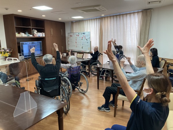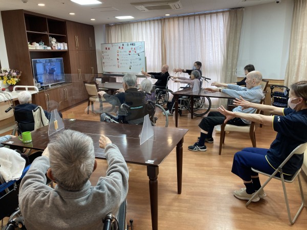 今日は、ALSOK介護の健康増進プログラムのひとつ「ノーアエクササイズ」がリモートで行われました。
