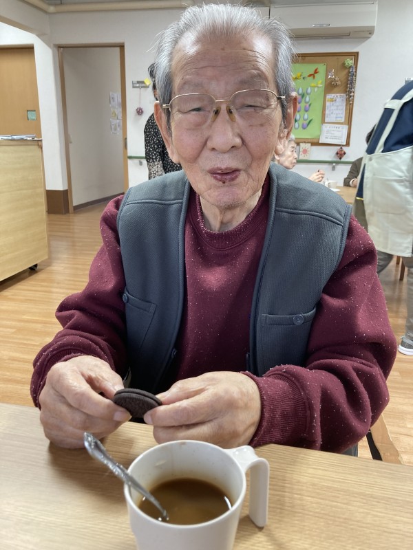コーヒーが大好きな男性入居者様、T様(写真中央)は