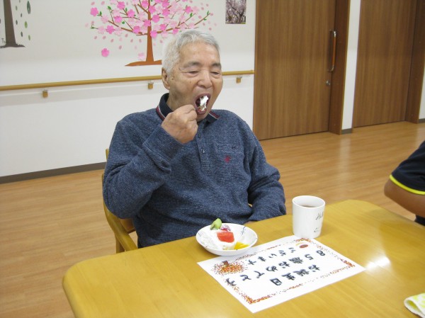 4/7で85歳 お誕生日おめでとうございます! 「お誕生日なの?忘れちゃったよ!」と笑っていました( ^ω^)・・・ 長男様がケーキをお持ちくださりお祝いをしました! 美味しいなぁ~とあっという間に召し上がられました!!「元気で過ごしたいです!」と話されました!(^^)! いつまでもスタッフを楽しませてくださいねー とお伝えすると嬉しそうにニコニコされていました???? 楽しいお誕生日の日なったようです。